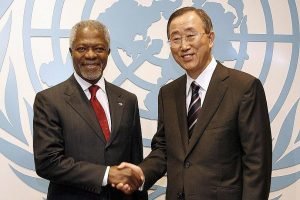 Birleşmiş Milletler eski Genel Sekreteri, Kofi Atta Annan, 10 yıllık bir hizmetten sonra 1 Ocak 2007’de görevini Güney Koreli Ban Ki-moon’a devretti. Annan, 8 Nisan 1938’de, Gana’da doğdu ve 18 Ağustos 2018’de yaşamını yitirdi. Birleşmiş Milletler, 2001 yılında Kofi Annan sekreterliğinde Nobel Barış ödülü kazanmıştı.