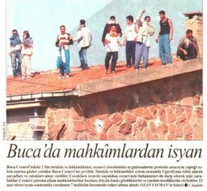 2004 | Buca Cezaevi’nde yaklaşık 2 bin tutuklu ve hükümlü Cezaevi Yönetimi’nin uygulamalarını protesto etmek amacıyla 5 gardiyanı rehin aldı.![]() |