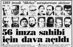 1984 | Aydınlar Dilekçesi’ ne imza koyan Ankara Üniversitesi, Hacettepe ve ODTÜ’de görevli öğretim üyeleri Prof. İlhan Tekeli, Dr. Ali Gitmez, Prof. Hüsnü Göksel, Prof. Bozkurt Güvenç, Dr. Sargut Şölçün, Doç. Mehmet Haberal, Doç. Zafer Öner, Prof. Şerafettin Turan’a rektörlerce kınama cezası verildi.![]() |
