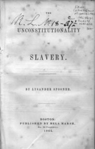 Amerikalı hukukçu ve politik düşünür Lysander Spooner doğdu. (Ölümü: 14 Mayıs 1887) Massachusetts Valisi ve senatör olan John Davis ve eyalet senatörü olan Charles Allen gibi zamanın önde gelen politikacıları ve avukatlarının altında hukuk eğitimi aldı. Üç yıl sonra Worcester’da kendi bürosunu kurdu. Her türlü zorunlu lisans yasasına karşı çıktı. Vergi de dahil olmak üzere bireylere ve mülklerine karşı baskıya sebebiyet verecek eylemleri ahlaki olmaması sebebiyle suç olarak kabul ederken, keyfi olarak konulan insan yapımı yasaları ihlal eden sözde suçları suç olarak saymayan doğa hukukunu ya da kendi tabiriyle Adalet Bilimi’ni savundu. Kölelik karşıtı hareketin bir figürü olarak kamuoyunda tanınan biri haline geldi. 1845 yılında Köleliğin Anayasaya Aykırılığı adlı kitabı yayınlandı.