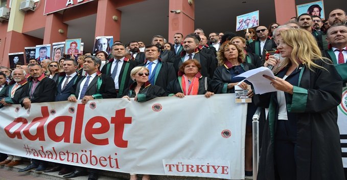 OHAL döneminde çıkarılan KHK.’ lar ve devamında yapılan yasal düzenlemeler ile yetkileri tırpanlanan ; arabuluculuk ,uzlaştırma gibi tasarruflarla görev alanları daraltılan; çalışma yeri olan adliyelerde kırmızı alanlar yaratılarak savunma hakkını temsil etmesi engellenen meslektaşlarımız dolayısıyla savunma hakkı engellenen yurttaşlarımız için biz buradayız.