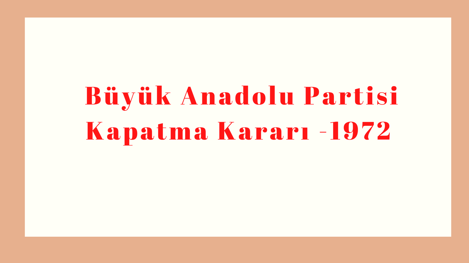 Büyük Anadolu Partisi Kapatma Kararı – 1972