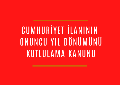 29 Ekim 1923’te ilan edilen cumhuriyetin onuncu yılının kutlanma şeklini belirleyen kanun, Resmi Gazetenin 17.06.1933 tarihli sayısında ilan edilerek yürürlüğe girmiştir.