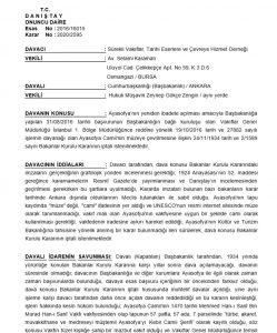 DAVANIN KONUSU : Ayasofya’nın yeniden ibadete açılması amacıyla Başbakanlığa yapılan 31/08/2016 tarihli başvurunun Başbakanlığın bağlı kuruluşu olan Vakıflar Genel Müdürlüğü İstanbul 1. Bölge Müdürlüğünce reddine yönelik 19/10/2016 tarih ve 27882 sayılı işlemin dayanağı olan Ayasofya Camii’nin müzeye çevrilmesine ilişkin 24/11/1934 tarih ve 2/1589 sayılı Bakanlar Kurulu Kararının iptali istenilmektedir.