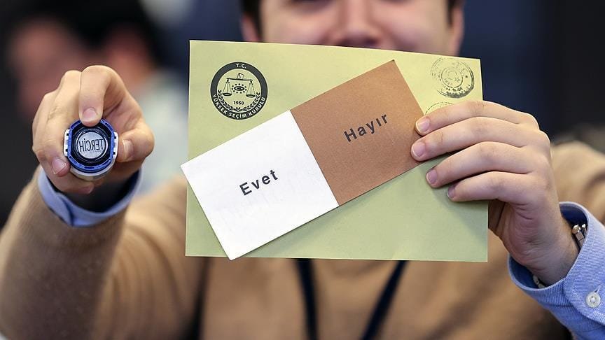 Seçmen oy vermek için geldiğinde sandık kurulu başkanı, seçmenin Türkiye Cumhuriyeti kimlik numarasını taşıyan nüfus cüzdanından veya pasaportundan kimliğini tespit eder. Seçim Bilişim Sistemi (SEÇSİS) üzerinden Yurt Dışı Seçmen Kütüğüne kayıtlı olup olmadığını ve başka bir yerde oy kullanıp kullanmadığını kontrol eder. Oy kullanmadığı anlaşılan seçmen, sandık kurulu mührüyle mühürlenmiş olan oy pusulası ve oy zarfıyla EVET veya TERCİH yazılı mührü alarak oyunu kullanmak üzere kapalı oy verme yerine girer. Oyunu kullanan seçmene çizelgede isminin bulunduğu yer imzalattırılır, ayrıca SEÇSİS sistemi üzerinden oy kullandı olarak işaretlenir.