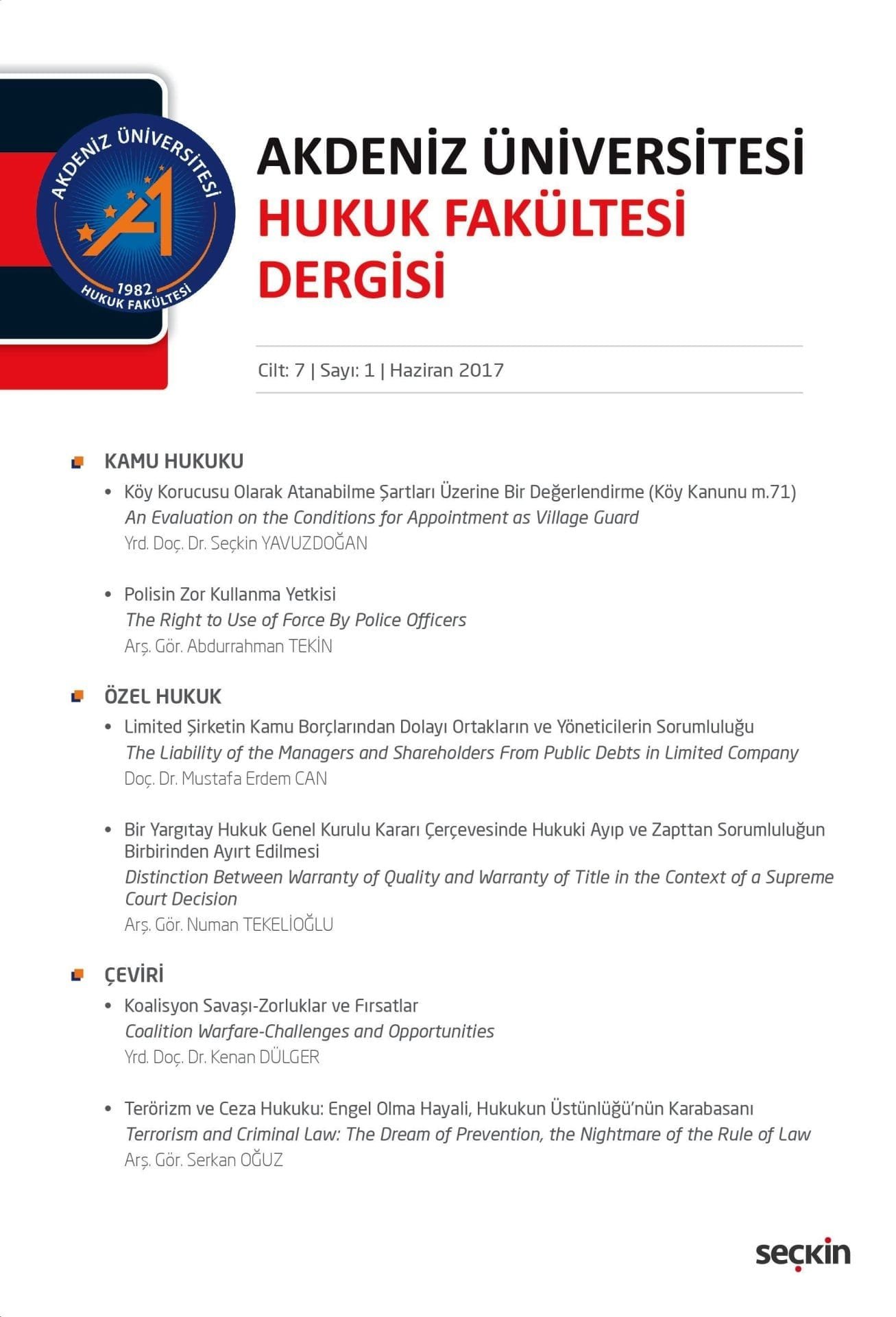 Akdeniz Üniversitesi Hukuk Fakültesi Dergisi