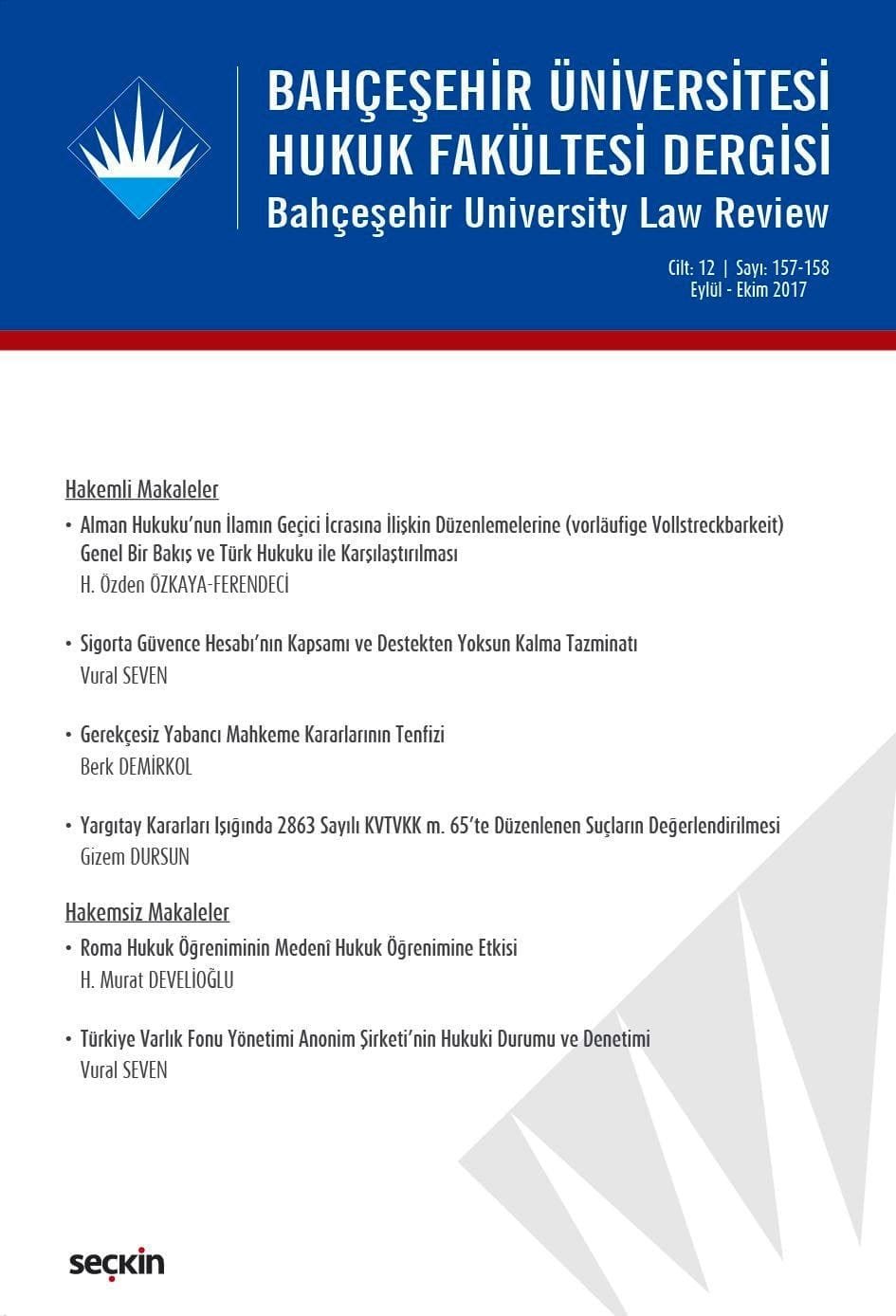 Bahçeşehir Üniversitesi Hukuk Fakültesi Dergisi
