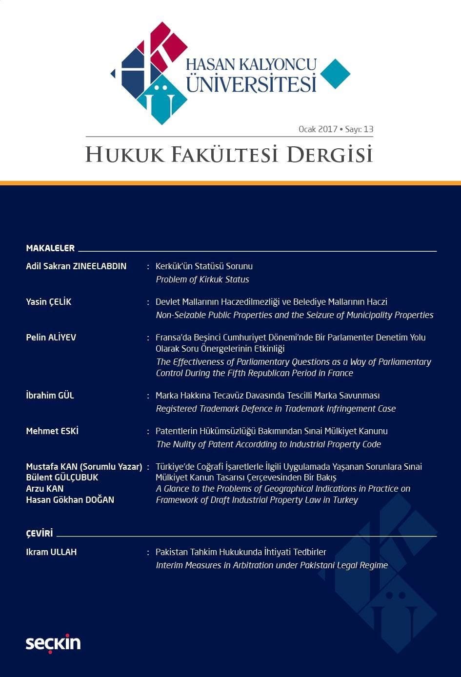 Hasan Kalyoncu Üniversitesi Hukuk Fakültesi Dergisi