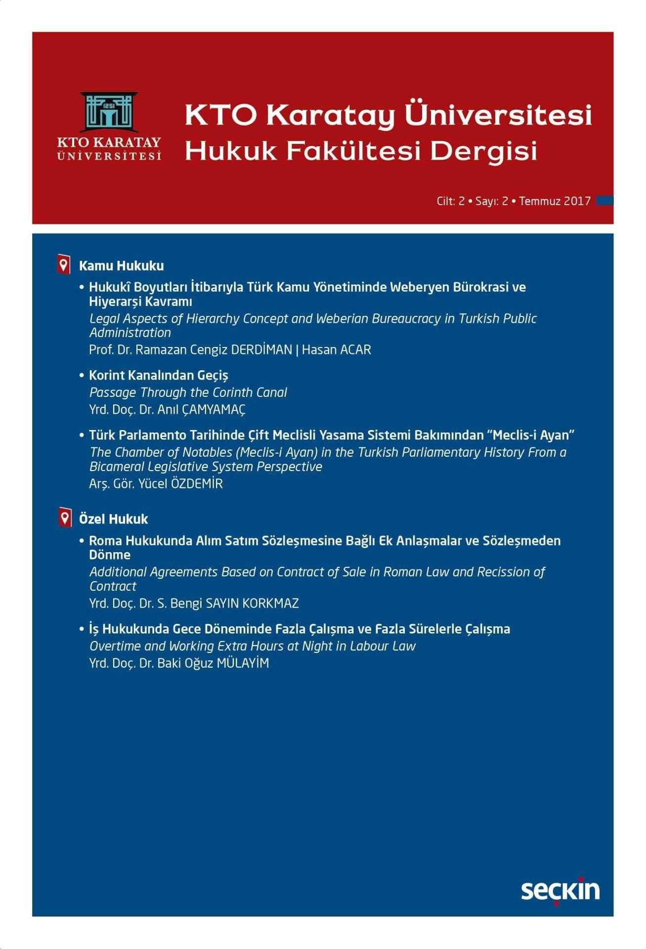 KTO Karatay Üniversitesi Hukuk Fakültesi Dergisi