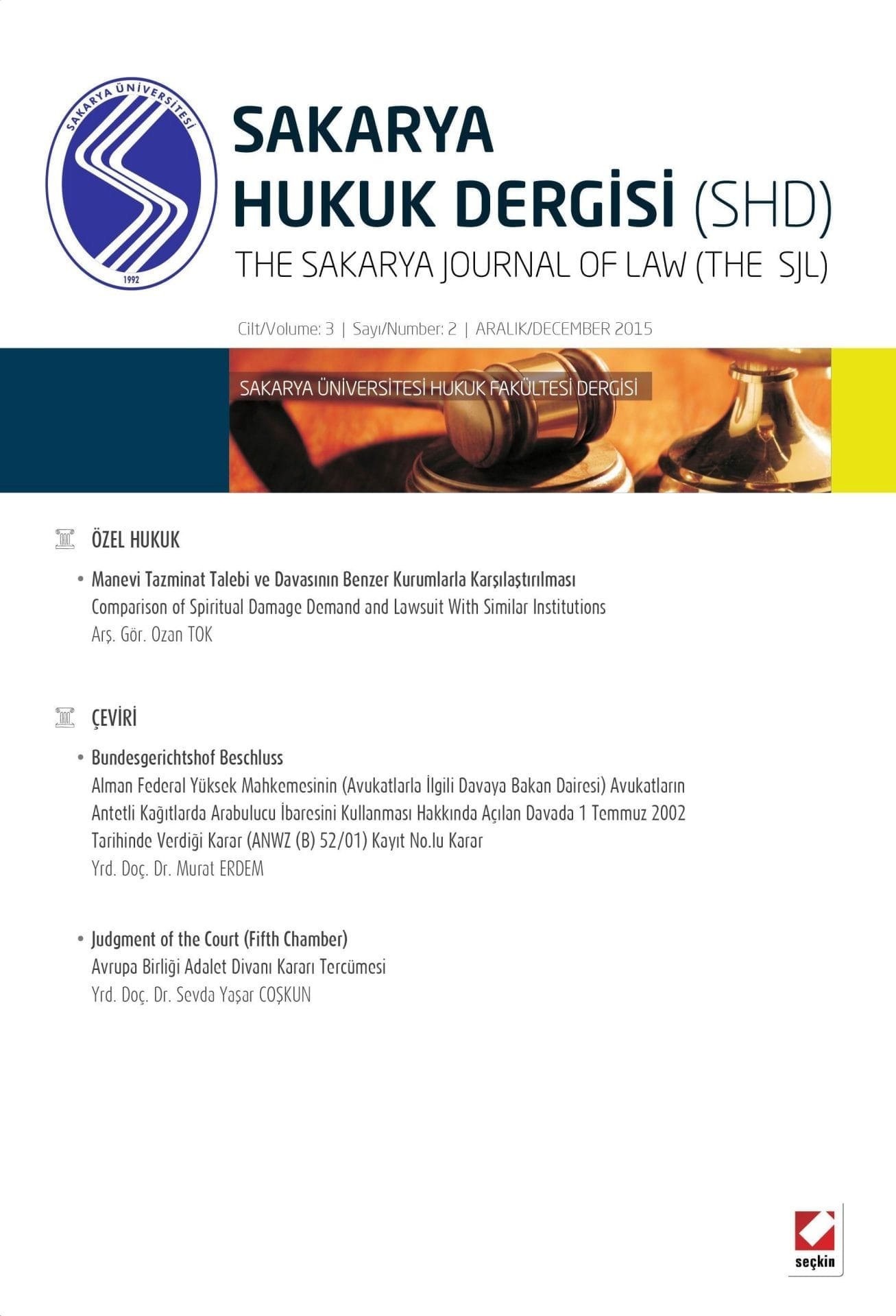 Sakarya Üniversitesi Hukuk Fakültesi Dergisi