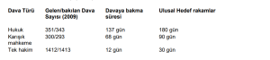 Sonuçlar: Ulusal dönüm noktaları ve mahkeme tarafından tespit edilen ilave dönüm noktaları tüm hukuk davaları için rehberin gereklerini karşılamaktadır. Ceza davalarını izlemek için kullanılan ortalama dava yürütme süresi yetersiz görülebilir ve hukuk davalarında kullanılanlara benzer dönüm noktaları getirilmelidir. Ulusal dönüm noktası sistemine daha fazla dönüm noktası da getirilebilir ama böylesi bir çare mahkemenin özerkliğinin dışındadır.