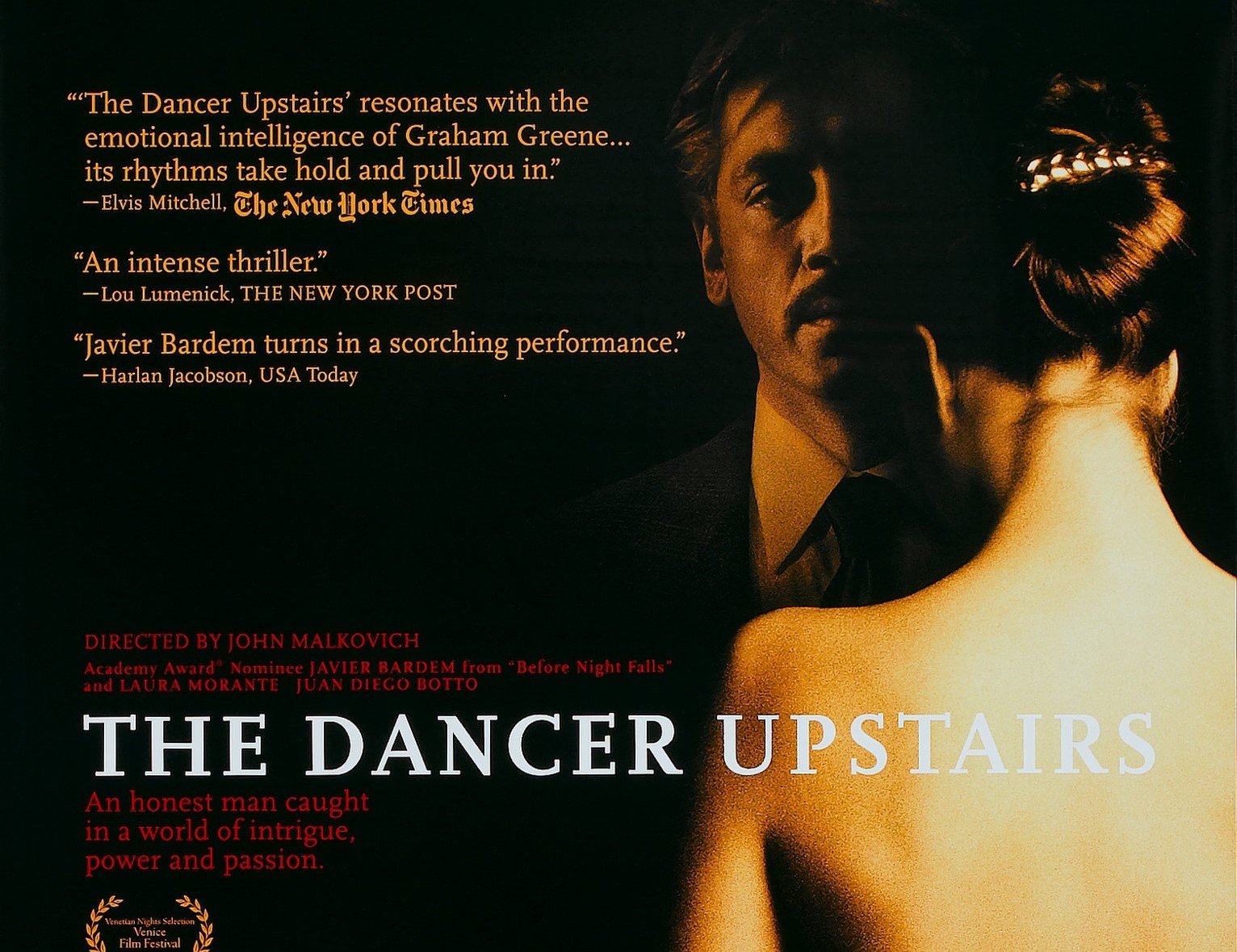 The Dancer Upstairs(Yukarıdaki Dansçı), hukukçu, felsefe profesörü ve Peru Aydınlık Yol Devrimci Hareketi Lideri Abimael Guzmán‘ın(Manuel Rubén Abimael Guzmán Reynoso) yaşamından kesitler sunmaktadır.