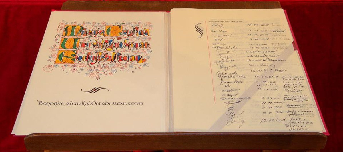 Avrupa’nın en eski üniversitesi olma özelliğini taşıyan Bologna Üniversitesi’nin dokuz yüzüncü kutlama törenine katılan Avrupa Üniversiteleri Rektörleri, Avrupa ülkeleri arasındaki sınırların tümden kaldırılmasına dört senelik bir süre kaldığı ve tüm Avrupa toplulukları arasındaki karşılıklı işbirliğinin daha da geliştirilmesinin öngörüldüğü bu günlerde devletler ve halkların, değişim içerisinde olan ve uluslararası boyutlara doğru açılan bir toplumda, üniversitelerin oynayacağı rolün öneminin bilincinde olmalarını dile getirmişler ve bu konuya ilişkin inançlarını şöyle sıralamışlardır: