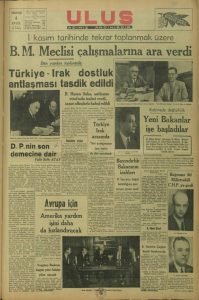 Her iki memleketin barış ve güvenlik ülkülerini bütün dünya ve hususiyle Orta Doğu milletlerini n barış ve güvenliğinde aramağı dış siyasetlerinin değişmez temeli sayarak, bu defa San Fransisko’da imzalanan ve milletlerarası dayanışmayı geliştirmek hedefini güden Birleşmiş Milletler Antlaşmasının hükümlerinin kendi amaçlarını sağlamlaştırdığım ve kendilerine bu yoldaki emeklerine devam için yeni bir hız almak imkânını kazandırdığını görmekle mutlu olarak,