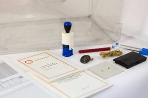 a) İlçe seçim kurulunca belirlenen binaya getirilen oy sandıkları ile oy verme kabinlerini imza karşılığı teslim almak ve bunların yerlerine yerleştirilmesinde sandık kuruluna yardım etmek,